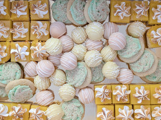 Zesty Citrus: two dozen lemon meringue bar bites, one dozen orange creamsicle cake truffles, one dozen lemon cake truffles, one dozen mini key lime pie sugar cookies